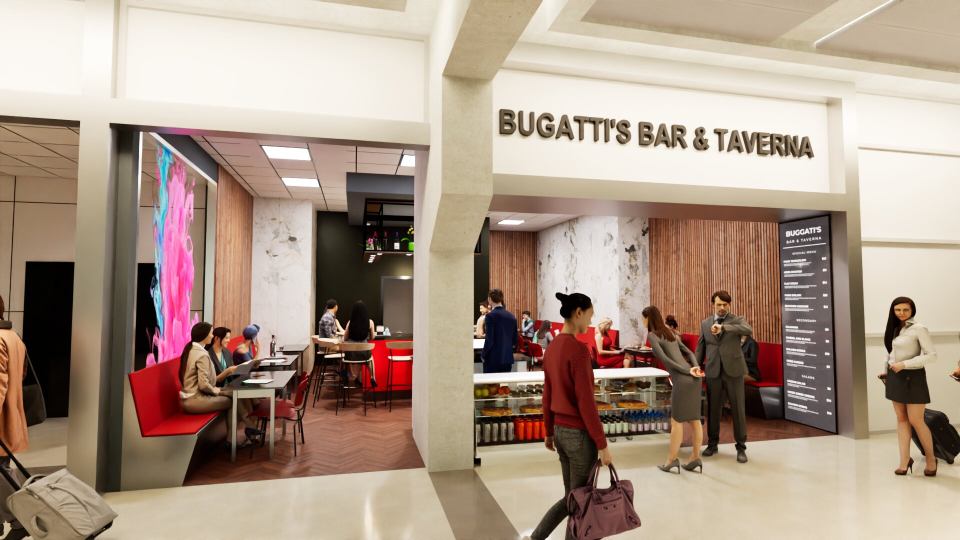 A renovation to an existing space designed by Höhe Design Group for Buggatis Bar & Taverna in the DFW Airport. I helped the team create several interior conceptual renderings to show to the client the possibilities for their new space.
