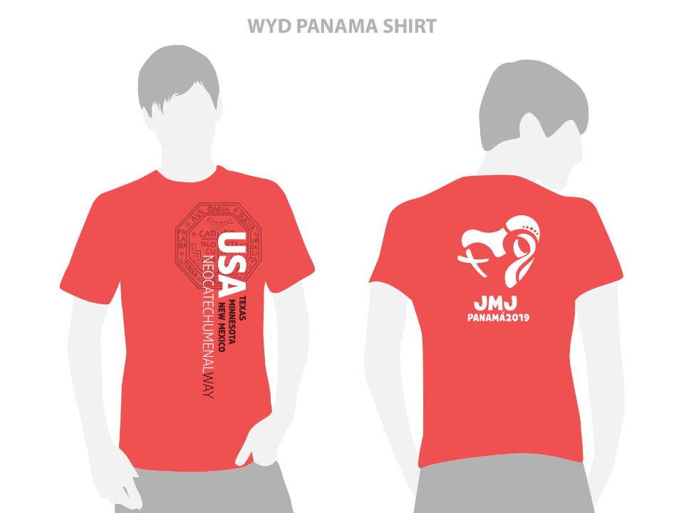 May, 2019A T-shirt for a group of youth going to World Youth Day in Panama City, Panama. The design includes the logo of the Neocatechumenal Way along with the WYD Krakow logo.