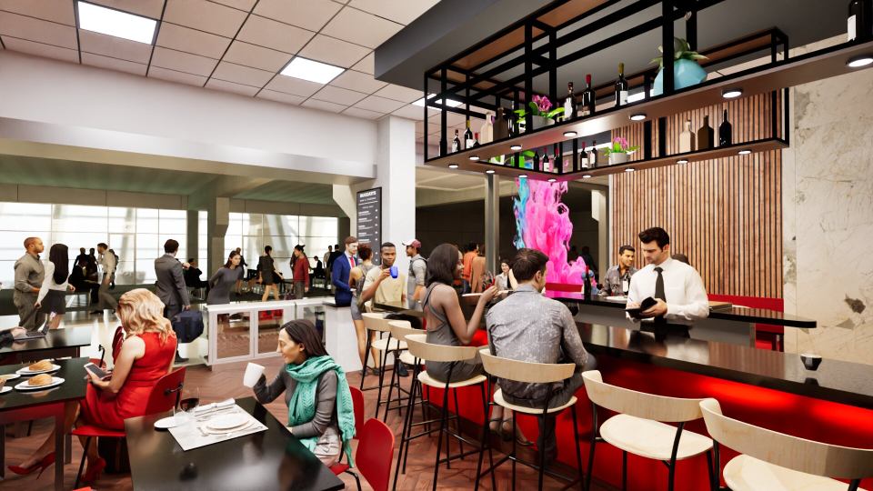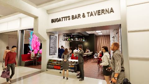 A renovation to an existing space designed by Höhe Design Group for Buggatis Bar & Taverna in the DFW Airport. I helped the team create several interior conceptual renderings to show to the client the possibilities for their new space.