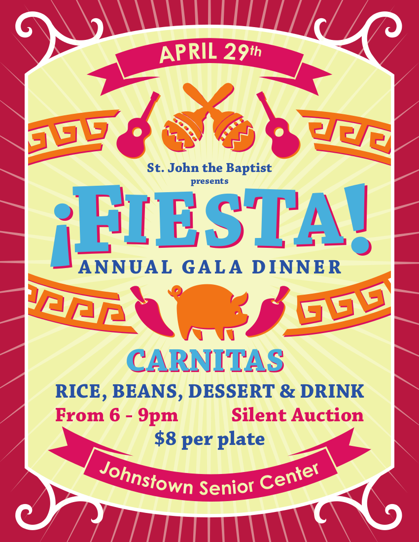 A poster for St. John the Baptist's annual "Fiesta Gala Dinner" in Johnstown, Colorado.